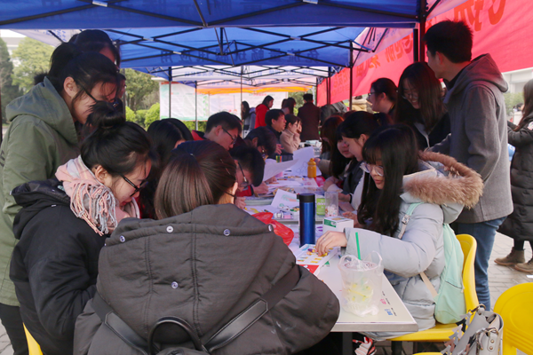 3月20日中午,由学生工作处心理健康教育中心主办、大学生心理协会承办的第六届“3.20咱爱您”广场咨询活动在食堂广场举行。太阳官网党委书记戴兆骏、党委副书记王立辉、学生工作处处长李印、团委书记解厚荣、心理健康教育中心专兼职老师等参加了本次咨询活动。