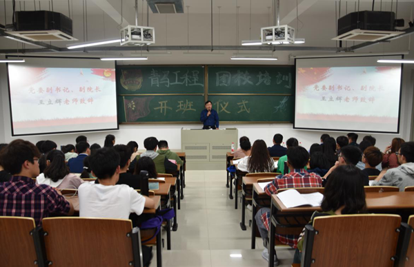 4月10日晚,太阳官网团委在扬教3306举行了2018年度团校培训开班典礼,学院党委副书记王立辉、团委书记解厚荣、副书记姚远以及参培学员250多人参加了本次开班典礼。