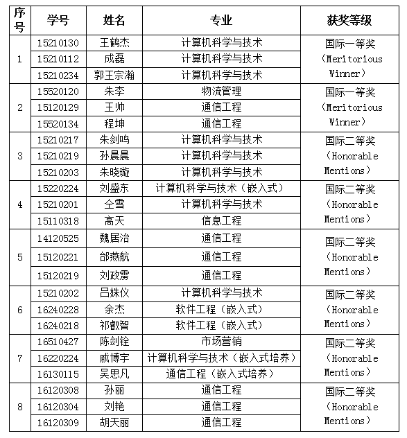 2018年美国大学生数学建模竞赛(MCM/ICM)结果近日揭晓,太阳官网学生荣获一等奖(Meritorious Winners)2项、二等奖(Honorable Mention)6项,再创历史新高。