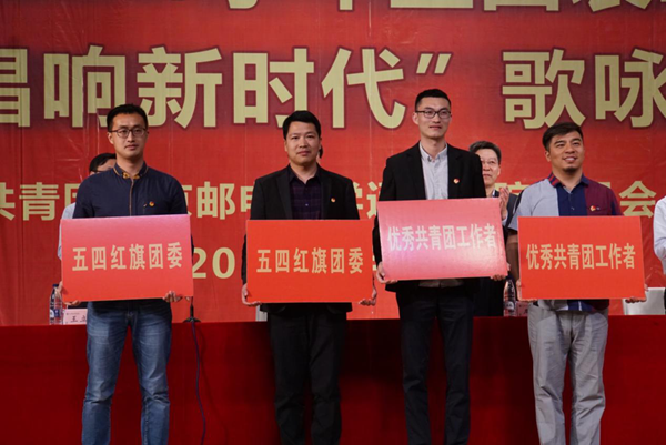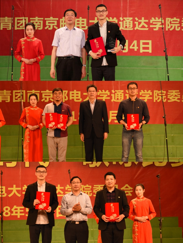 表彰大会在庄严的国歌声中拉开帷幕。常务副院长周西峰教授宣读了《关于表彰2017/2018学年先进团组织和个人的决定》,党委副书记王立辉宣读了《关于表彰2017/2018学年“青春献礼十九大,坚定信念跟党走”十佳主题团日活动的决定》。在本学年“五四”评优中,学院共有11个团支部荣获“五四红旗团支部”称号,19个团支部荣获“先进团支部”称号;共评出优秀团员标兵12名、优秀团干部20名、优秀社团干部41名、优秀团员235名、社团活动积极分子229名、十佳社团10个、十佳团支书10名。通信工程学院、电气工程学院分团委荣获“五四红旗团委”称号,杨俊、李敏老师荣获“优秀共青团工作者”称号。
