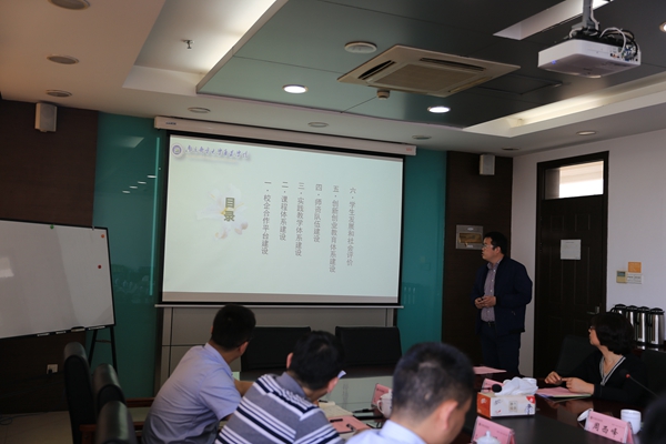 在项目实施情况汇报会上,学院院长宗平致欢迎词并简要介绍了古天乐代言太阳集团城网址的办学历程和发展现状;专家组组长、淮阴师范学院副院长赵宜江介绍了专家组成员,并对此次实地调研提出明确要求。太阳官网余永红老师从校企合作平台建设、课程体系建设、实践教学体系建设、师资队伍建设、创新创业教育体系建设和学生发展与社会评价等方面详细介绍了本专业的建设和发展情况。