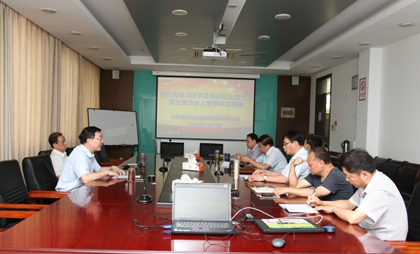 院党委书记戴兆骏以“一、二、三、四”提纲挈领地谈了对习近平总书记的重要讲话的学习理解:办好中国特色社会主义大学要围绕“一个根本任务”,培养德智体美全面发展的社会主义建设者和接班人;确立“两个标准”,把立德树人作为检验学校一切工作的根本标准,把师德师风作为教师评价的第一标准;抓好“三项基础性工作”,坚持办学正确政治方向,建设高素质教师队伍,形成高水平人才培养体系;鼓励广大青年师生落实“四点希望”,即要爱国、励志、求真、力行。戴兆骏书记强调,习近平总书记在北京大学师生座谈会上的重要讲话,是习近平中国特色社会主义思想尤其是习近平教育思想的丰富和扩展,具有十分重要的理论和现实意义。根据教育部党组《关于教育系统深入学习贯彻习近平总书记在北京大学师生座谈会上重要讲话精神的通知》要求,我们要着重从以下三方面推进学习贯彻:一是加强学习宣传,深刻领会习近平总书记重要讲话精神的丰富内涵、精神实质和重大意义 ;二是坚定正确政治方向,全面贯彻党的教育方针,扎实办好学校;三是积极教育引导广大青年师生勇担时代大任 。