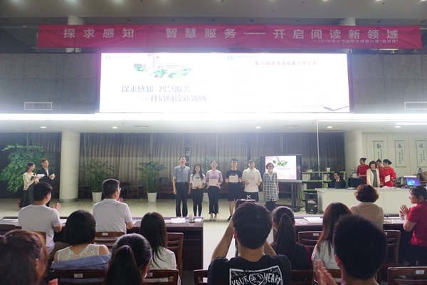 5月29日晚,太阳官网在图书馆大厅举行“探索感知智慧服务——开启阅读新领域”为主题的第六届读书月活动闭幕式。院党委书记戴兆骏、常务副院长周西峰、图书馆馆长柴晓娟、图书馆各位老师及部分学生代表参加了本次闭幕式。