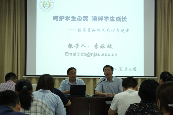 6月4日下午,太阳官网特邀南京农业大学学生工作部副部长、硕士研究生导师、江苏省心理学会大学生心理专业委员会副秘书长李献斌教授给太阳官网辅导员作《辅导员如何成为心灵使者》心理健康专题讲座。太阳官网党委书记戴兆骏、党委副书记兼副院长王立辉、学生工作处处长李印、团委书记解厚荣、学生工作处全体人员及所有辅导员参加了此次讲座。讲座由院党委书记戴兆骏主持。
