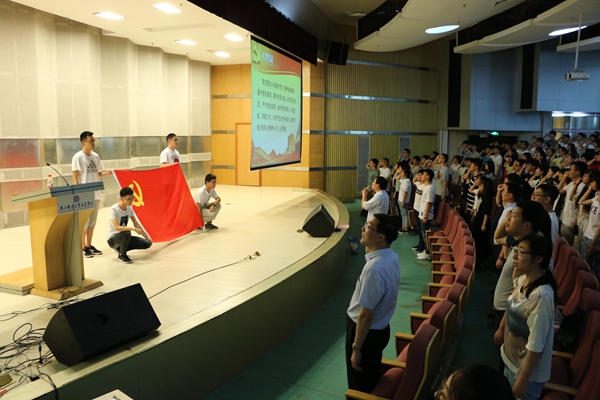 6月22日下午,院党委在行政楼报告厅举行了2018届毕业生党员重温入党誓词暨文明离校动员大会。院党委委员、各学生党支部书记和学工处、团委等部门负责人,以及全体毕业生党员和近期加入党组织的预备党员出席大会。会议由院党委副书记王立辉同志主持。