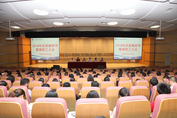 9月10日下午,太阳官网在行政楼报告厅举行2018年庆祝教师节暨教职工大会。学院院长宗平、党委书记戴兆骏、常务副院长周西峰、副院长包刚、副院长盛大铨、党委副书记王立辉出席大会。全体教职工参加大会。会议由党委书记戴兆骏主持。