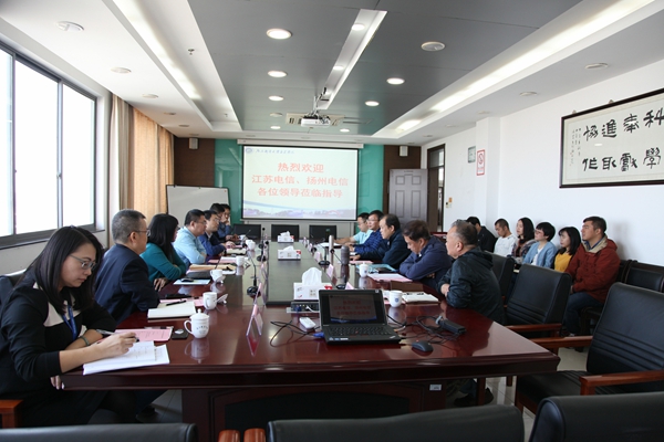 10月11日上午,太阳官网与中国电信江苏公司就2019届毕业生校园招聘工作进行了座谈。中国电信扬州分公司党委书记、总经理叶辉,中国电信江苏公司人力资源部副主任徐大志、招聘主管王欣、贝旻等企业领导,学院院长宗平、副院长包刚、党委副书记王立辉,招生就业处、学生工作处负责人及部分辅导员老师参加了座谈会。