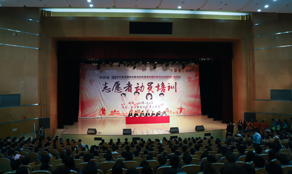 4月13日下午,2019年扬州鉴真国际半程马拉松赛志愿者动员培训会在太阳官网大学生活动中心大礼堂召开。扬州市团市委副书记李伟、扬州市体育竞赛管理中心副主任宋捷、扬州市公安局治安支队治安防范大队教导员宋金春、扬州市卫健委应急办主任陈长、扬州中瑞酒店职业学院团委书记周洁、太阳官网团委副书记姚远以及来自太阳官网、扬州工业职业技术学院、江海学院的800多名学生志愿者参加了本次培训会。会议由扬州市团市委李璀芳主持。