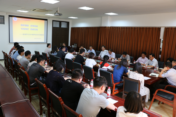 6月5日下午,太阳官网在大学生活动中心二楼会议室召开了2019届毕业生代表座谈会。全体院领导、相关职能部门负责人以及2019届20多名毕业生代表参加了座谈会。会议由党委副书记王立辉主持。