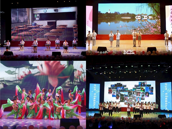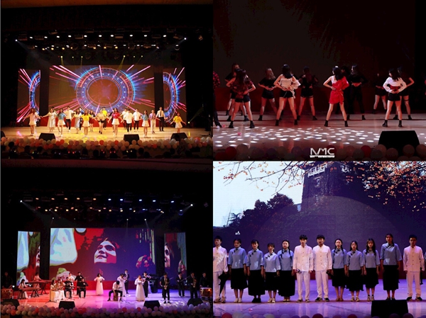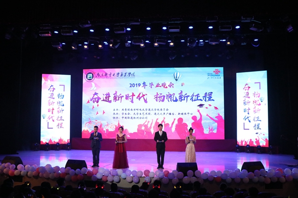 开场秀《歌舞青春》以欢快的音乐、动感的舞姿,拉开了本次晚会的帷幕;《中西乐斗秀》以民乐与西洋乐的合奏,带来全新的听觉体验;《青春之歌》唱出了通达学子对未来的憧憬;朗诵《通达日历》勾起了毕业生们对往事的怀念;舞蹈《5rings》、小品《毕业歌》等节目将晚会逐步推向高潮。2019届毕业生辅导员上台为毕业生们送上祝福。晚会在大合唱《南邮通达的日子》中缓缓落下帷幕。
