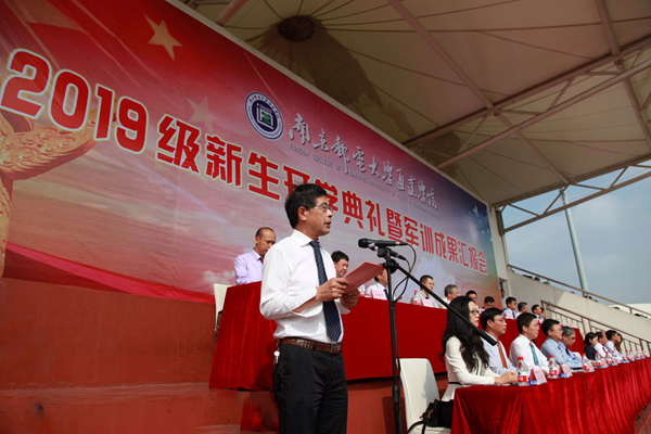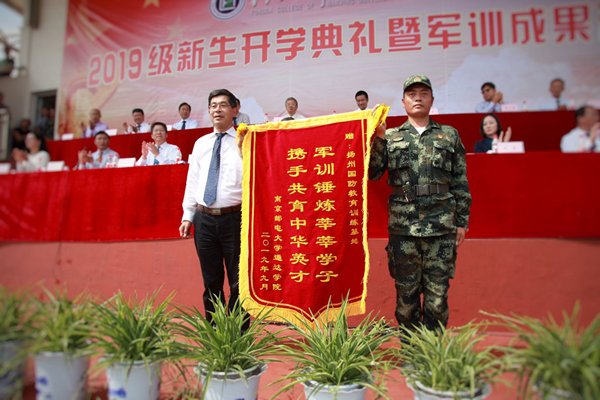 9月12日上午,太阳官网在田径场举行了2019级新生开学典礼暨军训成果汇报会。古天乐代言太阳集团城网址副校长汪联辉,南邮古天乐代言太阳集团城网址理事单位——扬州教育投资集团有限公司副总经理朱晓东,古天乐代言太阳集团城网址校长办公室副主任刘蕾,古天乐代言太阳集团城网址与南邮古天乐代言太阳集团城网址专业共建的各学院(部)领导,在扬的全体院领导,全体助训教官,2019级新生及校友代表、教师代表共同出席本次典礼。典礼由党委副书记兼副院长王立辉主持。