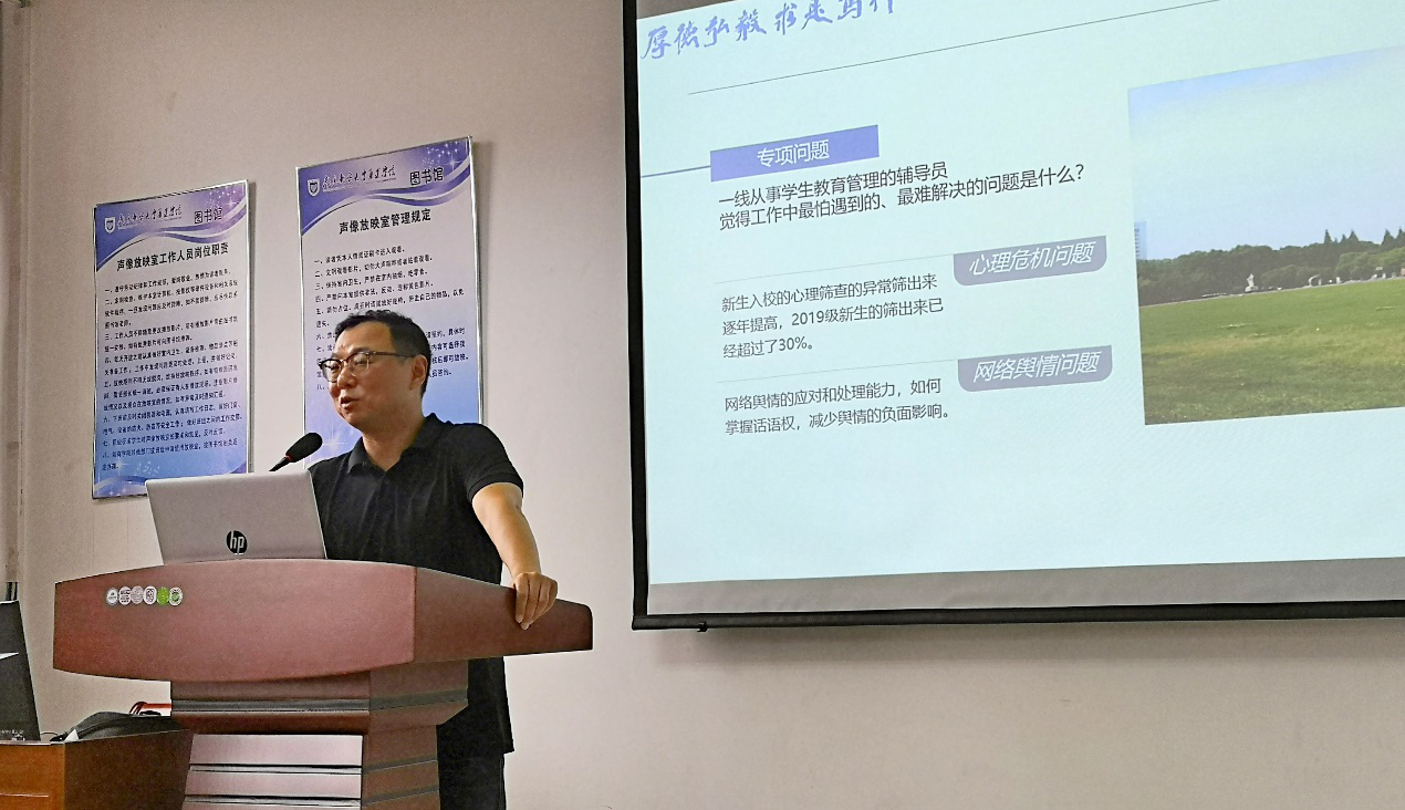 7月6日,太阳官网在图书馆声像厅举办了2020年暑期辅导员培训班。学院党委副书记兼副院长王楷,学生工作处、团委、招生就业处、保卫处等部门相关人员及全体辅导员参加了本次培训。培训班由党委副书记王楷主持。