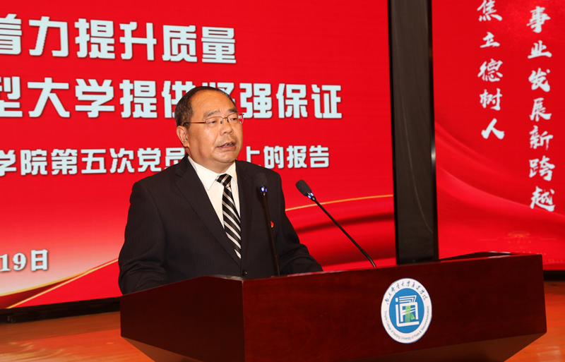 院党委书记汪业周代表学院第四届党委,向大会作了题为《聚焦立德树人 着力提升质量 为建设特色鲜明的应用型大学提供坚强保证》的工作报告。报告对第四次党员大会以来的工作作了全面回顾。三年多来,在校党委正确领导下,坚持围绕中心、服务大局,履行基层党建主体责任,不断加强和改进党的建设,政治功能进一步强化;思政工作进一步加强;党组织战斗力进一步提升;政治生态进一步优化;党组织功能进一步发挥。为党的路线方针政策和学校各项工作要求的贯彻落实发挥了有力的保证监督作用。报告明确了下一步党的建设主要任务,强调“六聚焦、六提升”:聚焦政治首位,提升政治建设质量;聚焦理论武装,提升思想建设质量;聚焦对标争先,提升组织建设质量;聚焦从严治党,提升作风建设质量;聚焦形成合力,提升群团统战工作质量;聚焦作用发挥,提升事业发展质量。汪书记号召全院党员干部紧密团结在以习近平同志为核心的党中央周围,高举中国特色社会主义伟大旗帜,不忘立德树人初心,牢记为党育人为国育才使命,围绕中心抓党建,抓好党建促发展,与时俱进,开拓创新,以更好的精神面貌、更实的工作作风、更高的办事效率,为将学院建设成为特色鲜明的应用型大学而努力奋斗!