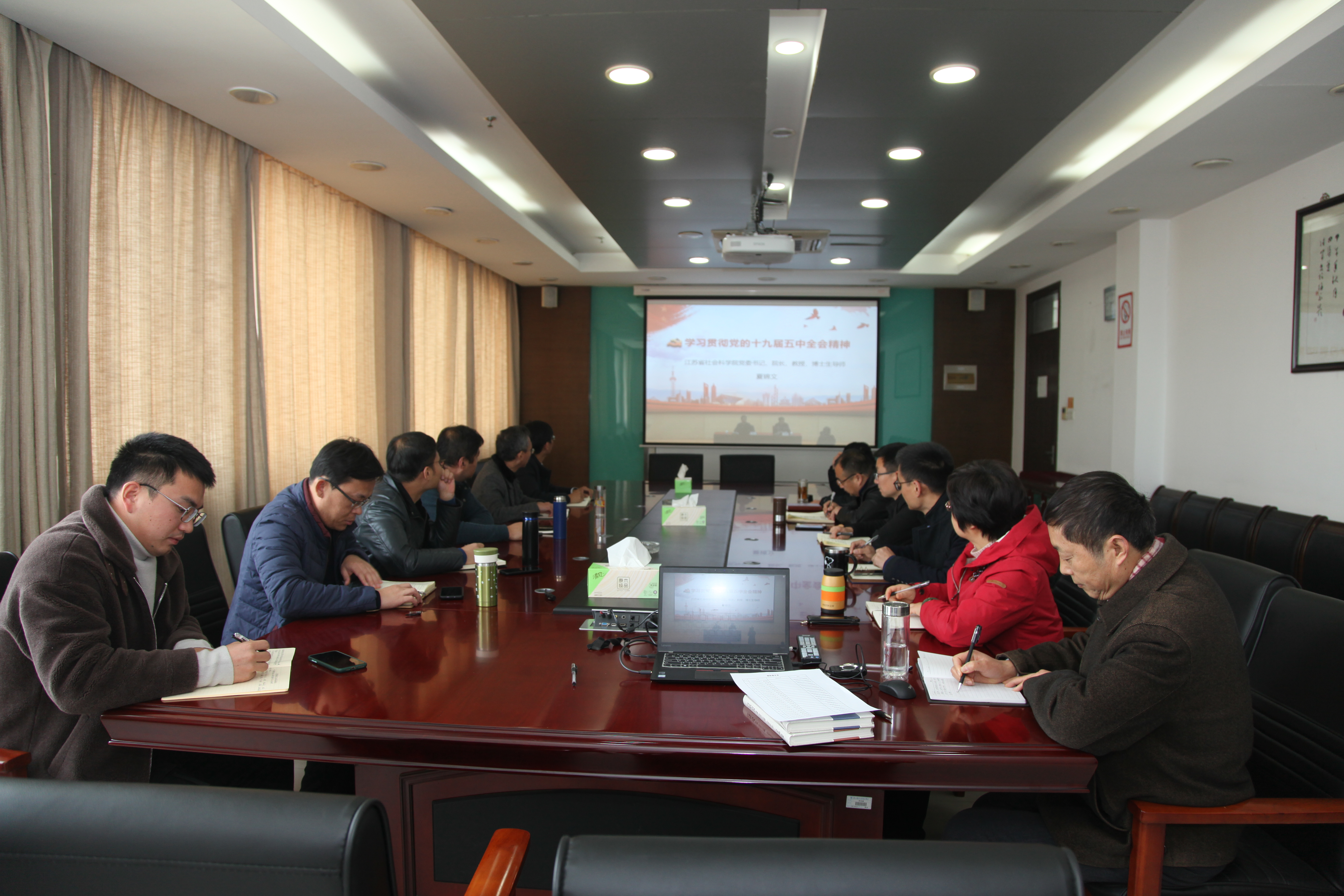12月4日下午,古天乐代言太阳集团城网址举行十九届五中全会精神报告会,邀请江苏省社会科学院党委书记、院长、省委宣讲团成员、教授、博士生导师夏锦文作传达中国共产党第十九届中央委员会第五次全体会议精神报告,并通过学校自建平台进行直播。院党委组织理论学习中心组成员在学院行政楼1013会议室同步收看报告实况。