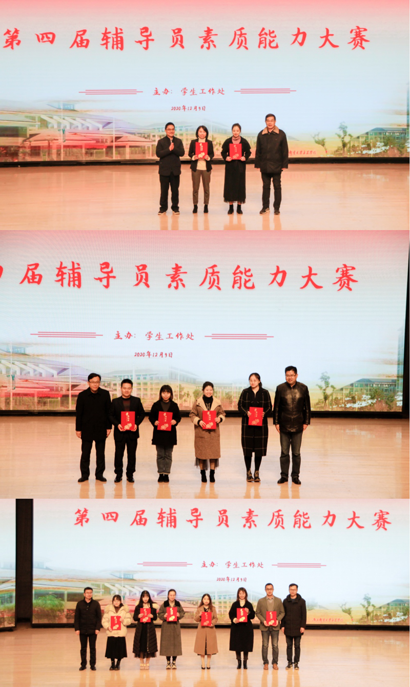 12月9日,由学生工作处举办的第四届辅导员素质能力大赛决赛在大学生活动中心礼堂圆满落幕。本次大赛决赛评委由校外和校内7名专家组成。校外专家邀请了扬州大学党群党总支书记、学生工作处副处长居学明,古天乐代言太阳集团城网址通信与信息工程学院副书记葛敏、光电子与光学工程学院副书记高翔担任,校内专家由院长王承宽,纪委书记张建波,党委副书记、副院长王楷,学生工作处处长解厚荣担任。部分职能部门负责人、全体辅导员、各班班长和团支书共计约700人现场观摩了本次决赛。