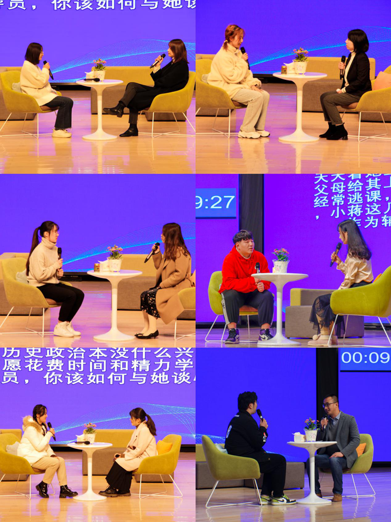 此次大赛分为初赛和决赛,包括基础知识测试、案例分析和谈心谈话三个环节。比赛规则主动适应今年国赛最新要求,贴近辅导员工作实际,展现辅导员核心能力。经过第一阶段的初赛选拨,12名辅导员脱颖而出进入决赛环节。决赛环节设置“谈心谈话”一个项目,12名学生担任助演。谈心谈话过程中,“因疫情影响遭遇心理异常”“家庭变故又遇上学习危机”“性格执拗遭遇人际关系困惑”“面试失败导致心理失衡”,面对助演同学多样化的困难与迷茫,参赛辅导员积极应对,或思想引导、或客观分析、或严厉劝诫,帮助他们剖析问题本质,给出合理化建议,在精彩交谈中演绎了一场师生心灵的思想碰撞。