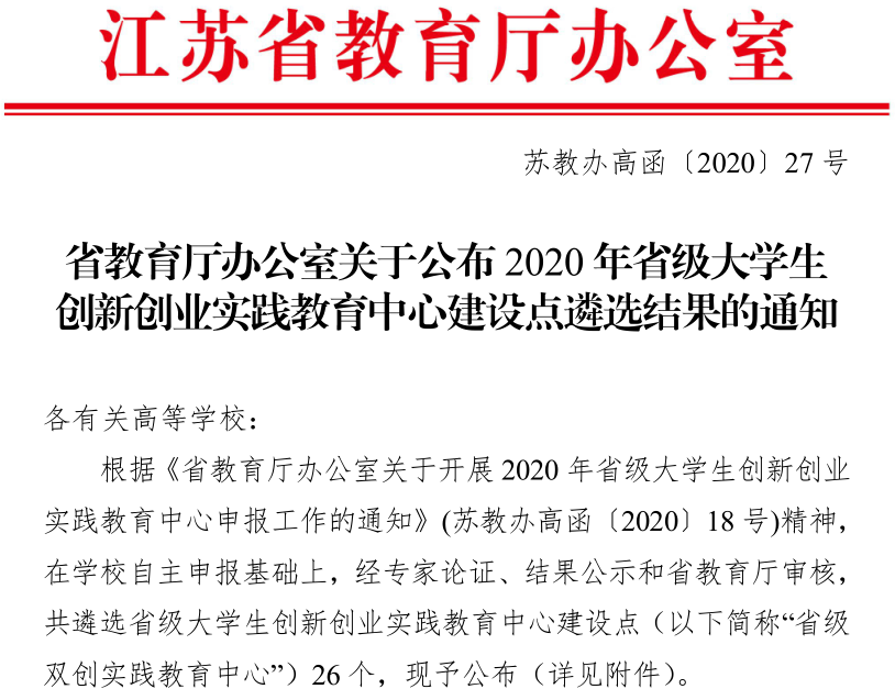 2020年10月至12月,太阳官网成功申报了省级大学生创新创业实践教育中心(简称“双创中心”)建设点,这是太阳官网在大学生创新创业教育中的一项重要突破。本次评选在全省共遴选出省级大学生创新创业实践教育中心建设点26个,太阳官网是本次申报成功的唯一一所独立学院。