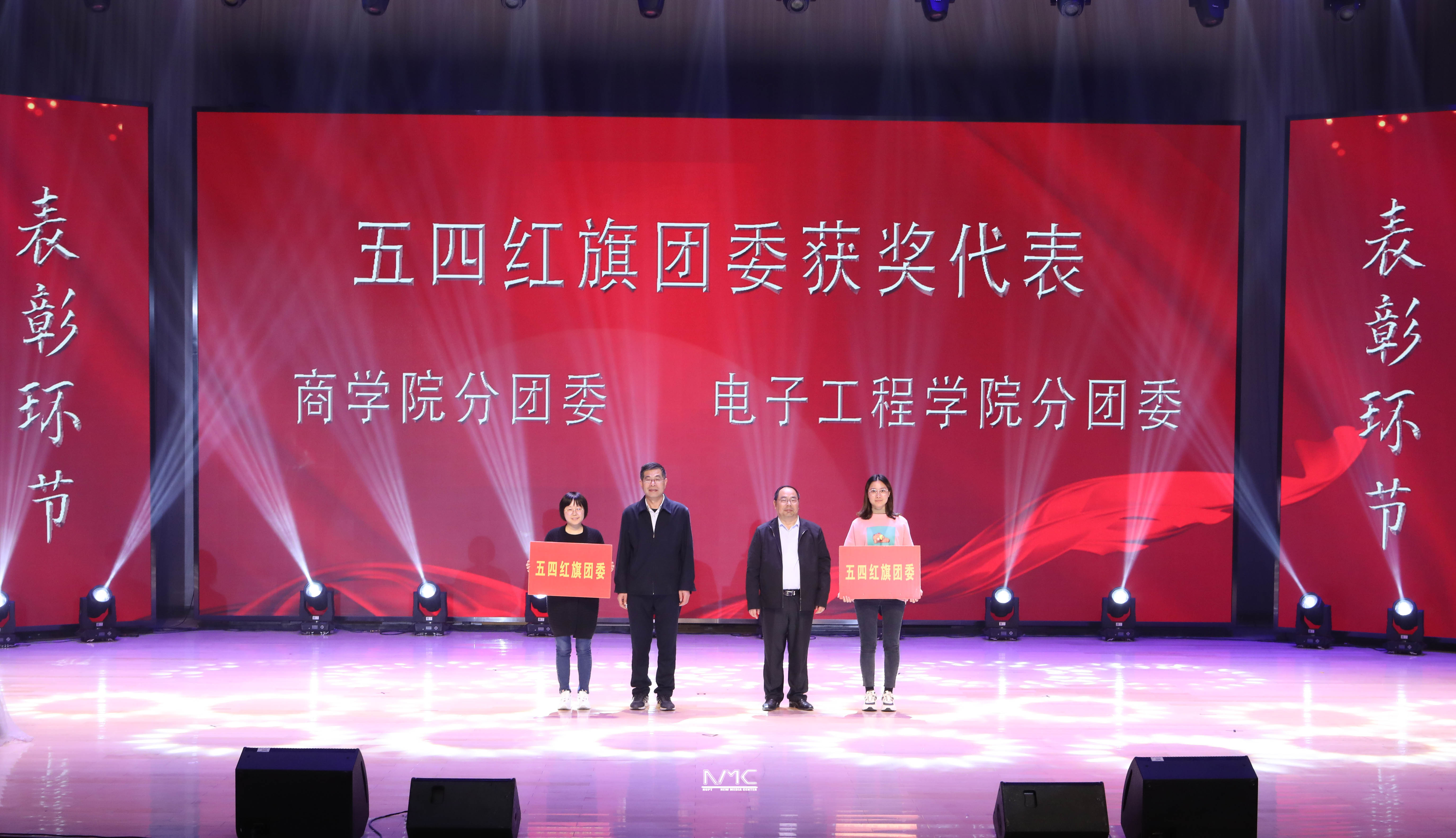 在五四表彰环节中,学院党委副书记兼副院长王楷宣读了《关于表彰2020/2021学年先进团组织和个人的决定》和《关于表彰2020/2021学年“峥嵘岁月百年史,不忘初心砥砺行”十佳主题团日活动的决定》。本学年,学院共有12个团支部荣获“五四红旗团支部”称号,14个团支部荣获“先进团支部”称号;共评选出优秀共青团员标兵21名、优秀团干部28名、优秀社团干部47名、优秀共青团员215名、社团活动积极分子222名、十佳社团10个、十佳团支书10名。商学院、电子工程学院分团委荣获“五四红旗团委”称号,余西亚、杨俊老师荣获“优秀共青团工作者”称号。全体院领导为上述受表彰的先进集体和个人代表颁奖。6名优秀学生代表依次上台发言,向全体师生彰显榜样力量,绽放青春风采。