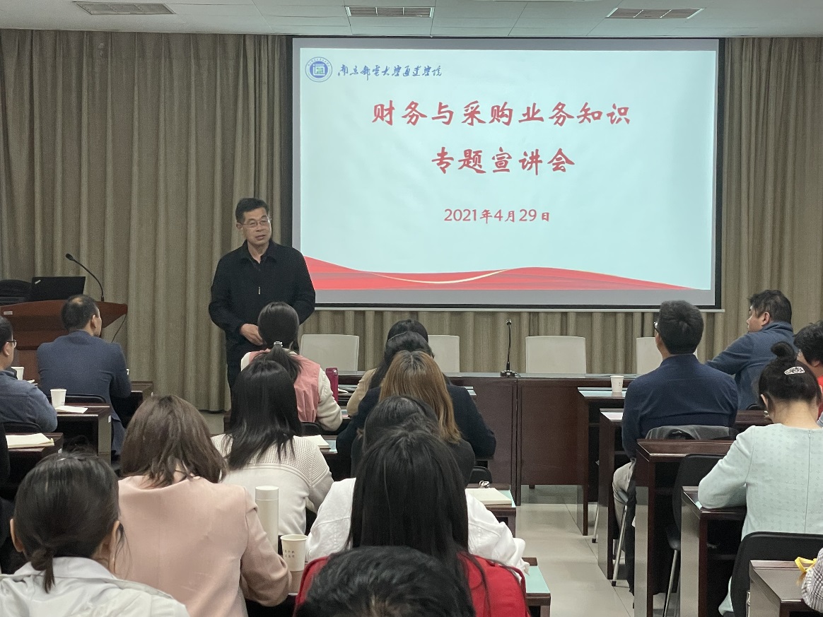 4月29日下午,太阳官网特邀古天乐代言太阳集团城网址纪委委员、财务处处长张进,古天乐代言太阳集团城网址采购招标管理办公室主任胡学忠,在大学生活动中心一楼报告厅召开财务与采购业务知识专题宣讲会。院长王承宽、副院长倪可,各部门主要负责人及相关部门人员参加会议。会议由院长王承宽主持。