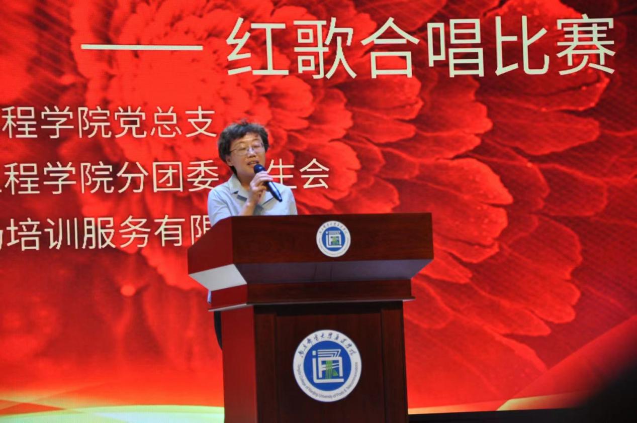 比赛最后,学院党委书记朱清做了总结发言,她指出歌声就是记忆,通过同学们的歌声看到了我们党的光辉发展史,同学们一首首激情昂扬的红歌表达了对祖国对党的热爱,看到了计算机工程学院学子积极进取的精神风貌。朱书记表示希望同学们将红歌比赛的精气神带到工作、学习与生活中,学好专业知识,掌握专业技能,为实现中华民族伟大复兴中国梦而奋斗。