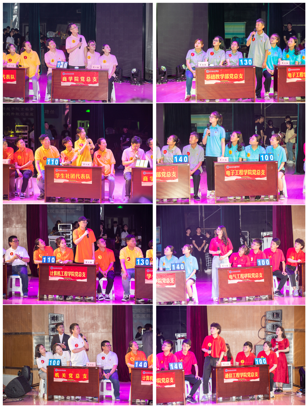 在党史知识竞赛篇章中,共有8支代表队参赛。竞赛通过必答题、抢答题和加试题等环节,进行紧张角逐。选手沉着应答、踊跃抢答、相互配合,赢得现场阵阵掌声。党史知识竞赛为大家上演了一场精彩的“党史知识盛宴”。最终,商学院党总支代表队获得一等奖,计算机工程学院党总支代表队、通信工程学院党总支代表队获得二等奖,机关党总支代表队、电气工程学院党总支代表队、基础教学部党总支代表队、电子工程学院党总支代表队、学生社团代表队获得三等奖。