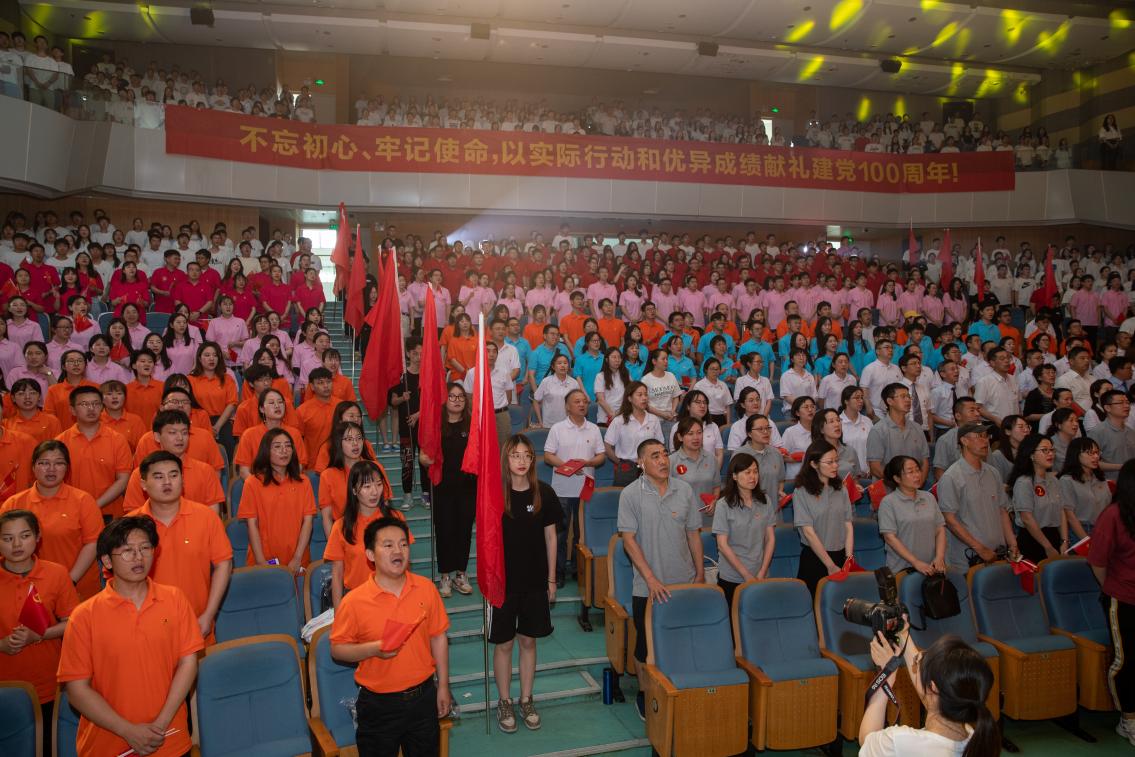 6月9日下午,学院党委在大学生活动中心礼堂,隆重举行建党100周年庆祝大会。学院全体党员、发展对象、入党积极分子约900人参加了大会。