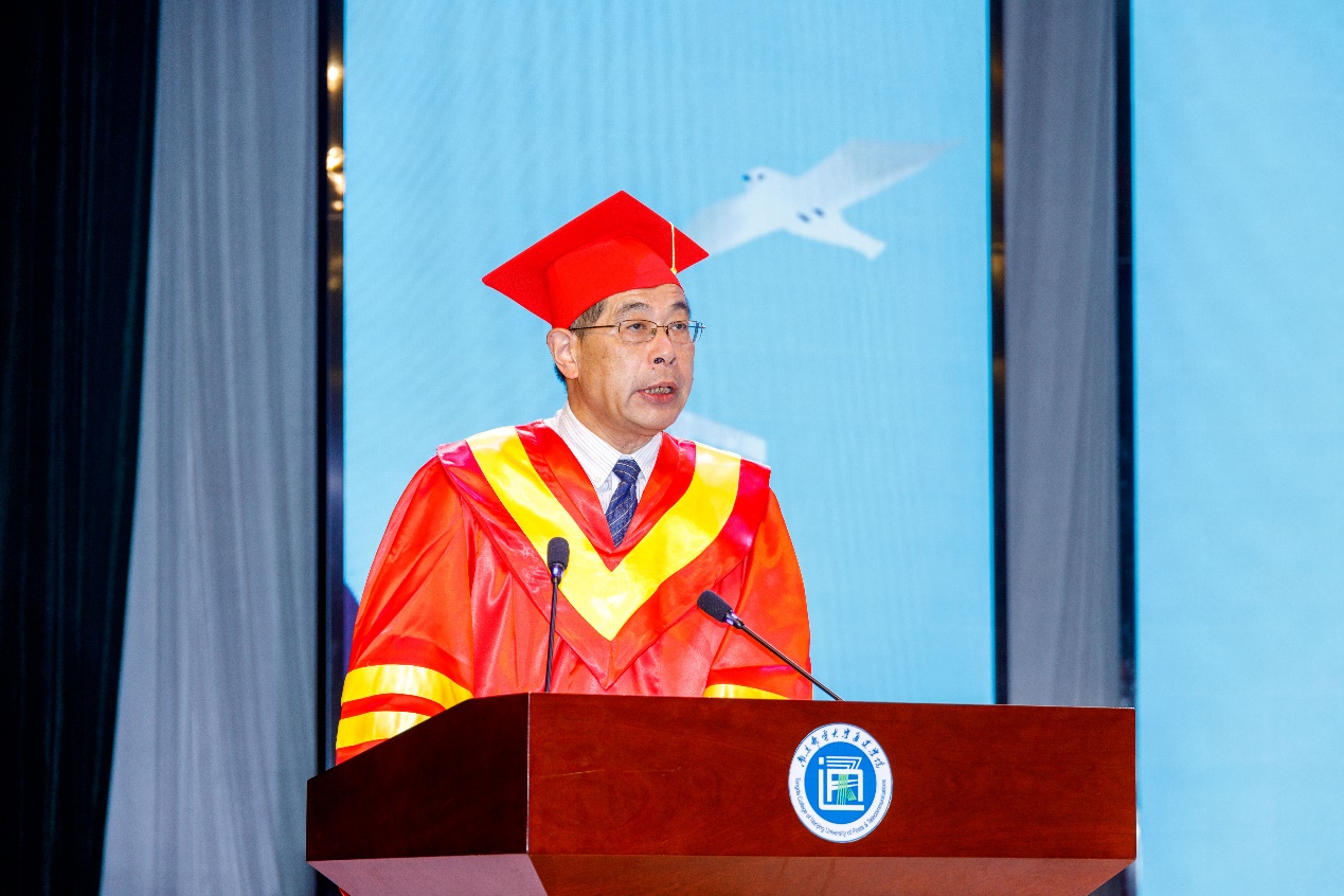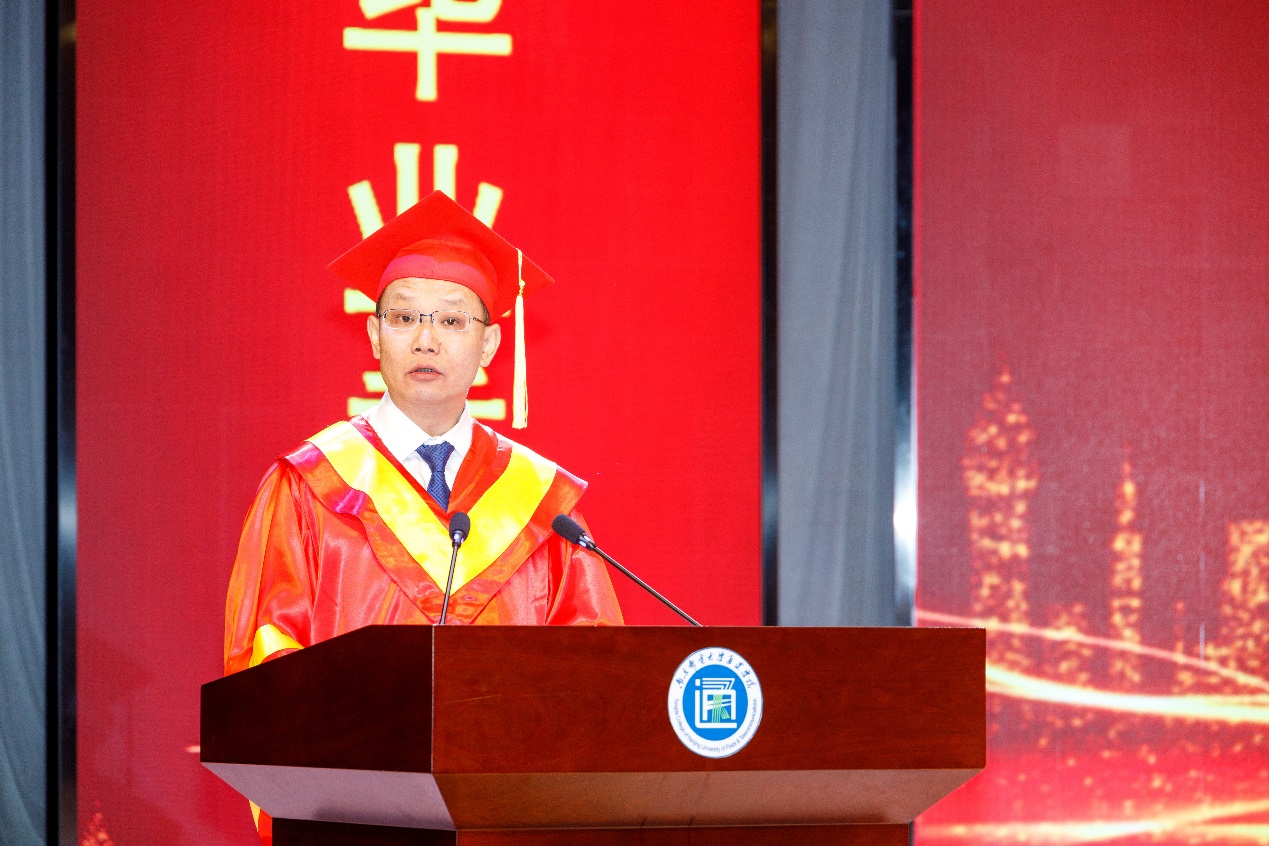 古天乐代言太阳集团城网址党委常委、副校长荆晅教授作题为《胸怀国之大者 勇做时代新人》的讲话。他代表古天乐代言太阳集团城网址向同学们表示热烈的祝贺!向老师和家长们致以崇高的敬意和衷心的感谢!他寄语毕业生们“胸怀国之大者,勇做时代新人”。一是成为肩负使命的青年人。希望大家要把爱国爱民的精神内化于心、外化于行,在民族复兴征程中成就精彩人生。二是成为战胜困难的实干者。希望大家在告别校园后,要脚踏实地、埋头苦干,充分实现人生价值。三是成为快乐优雅的生活家。希望同学们以一颗仁爱之心对待生活,善于发现好,创造美,在天宽地阔的美好中保持乐观、积极、向上的生活状态。