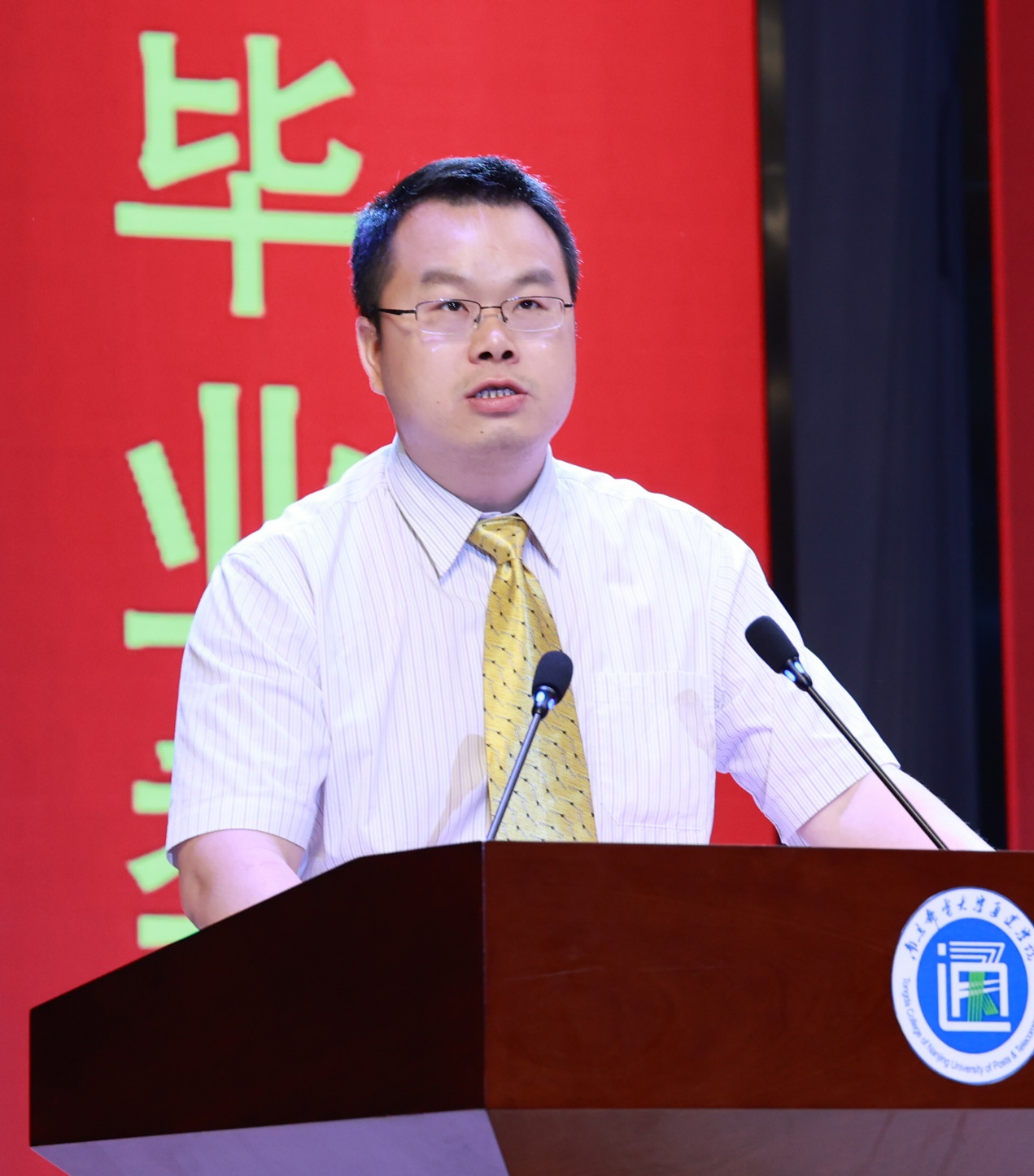 在热烈的掌声中,王院长致辞2021届毕业生。他代表全院师生员工,向全体毕业生表示热烈的祝贺,向老师和管理服务人员表示衷心的感谢,向倾力倾心培育同学们成长成才的父母表示崇高的敬意!他深情回顾了同学们在校园中学习、生活的点点滴滴,感谢同学们对学院发展建设作出的积极贡献。特别提到有327人考取了国内外研究生,通信工程专业升学率超过30%;其中通信工程专业171203班升学率达到了54.84%;数百名毕业生获得了知名企业录用;还涌现出在全国大学生电子设计大赛,全国大学生数学建模竞赛,美国大学生数学建模竞赛,江苏省大学生创新创业大赛,中国机器人技能竞赛等国家级、省级赛事中屡创佳绩的优秀毕业生代表等。他点赞毕业生“你们用砥砺多彩的青春写在了母校,学院发展的每一篇华章,都浸润着你们的汗水和足迹。”他分别用母校为你们骄傲、喝彩、守候,我为你们鼓掌、点赞、祝福表达了对同学们的诚挚谢意和深深祝福!