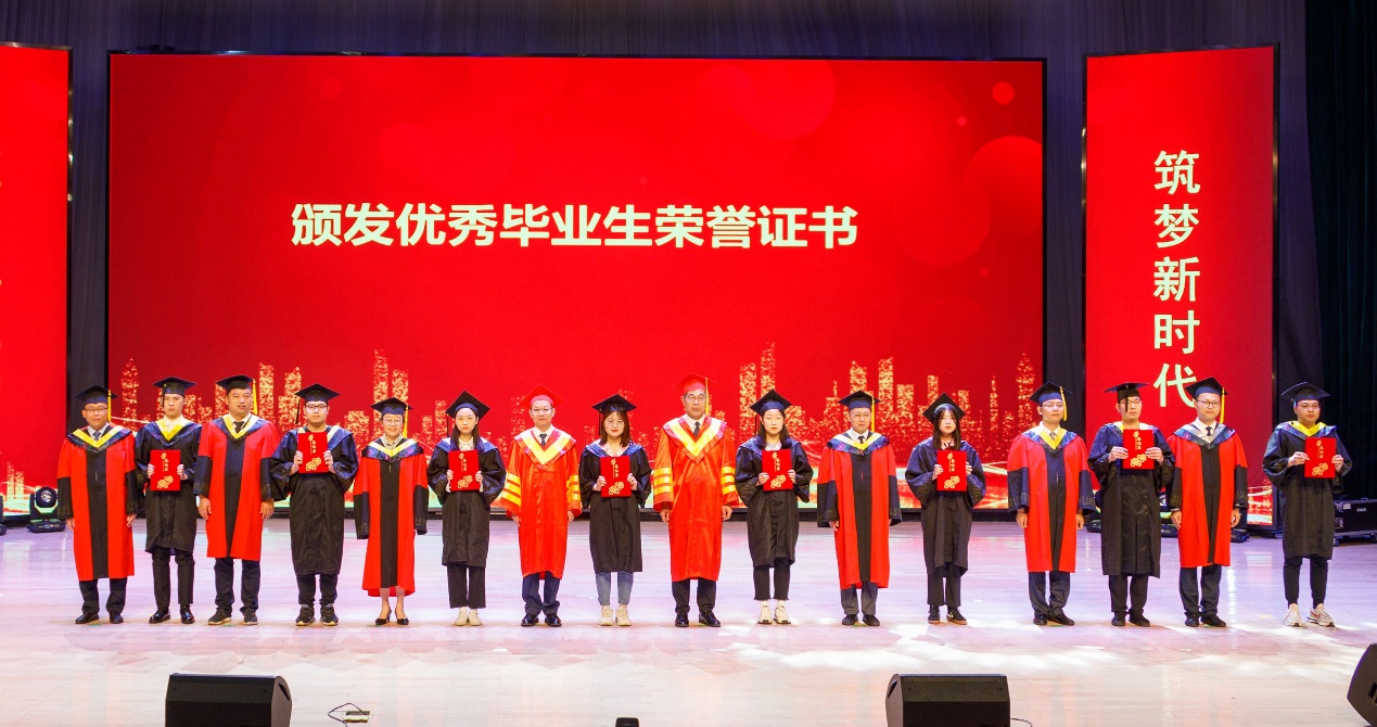 学院副院长刘允老师宣读优秀毕业生表彰决定和校友联络员聘请决定。典礼上,荆校长和全体院领导为2021届优秀毕业生代表颁发荣誉证书,为2021届校友联络员代表颁发聘书。