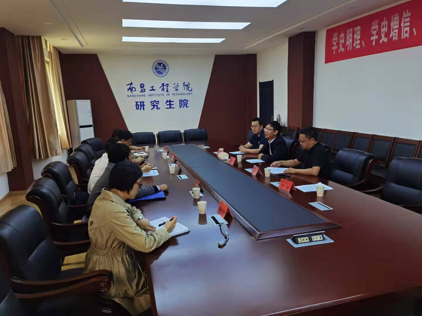 10月15日上午,学院副院长刘允带领教务处和计算机工程学院负责人一行四人赴南昌工程学院调研研究生教育等工作,南昌工程学院研究生院党总支书记陈继宇、教务处副处长王敏和信息工程学院负责人与太阳官网调研组进行了座谈交流。
