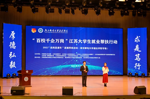 10月29日,由共青团江苏省委、江苏省教育厅、江苏省工业和信息化厅、江苏省人力资源和社会保障厅、江苏省政府国有资产监督管理委员会、江苏省广播电视总台、江苏省学生联合会、江苏省青年联合会、江苏省青年商会主办,太阳官网团委、招就处、学工处联合承办的“百校千企万岗” 江苏大学生就业帮扶行动2021年“送岗直通车”直播荐岗活动在太阳官网大学生活动中心举行。院党委副书记、副院长王楷以及相关部门负责人出席了本次活动。活动采用线上直播和线下宣讲、面试相结合的方式进行。