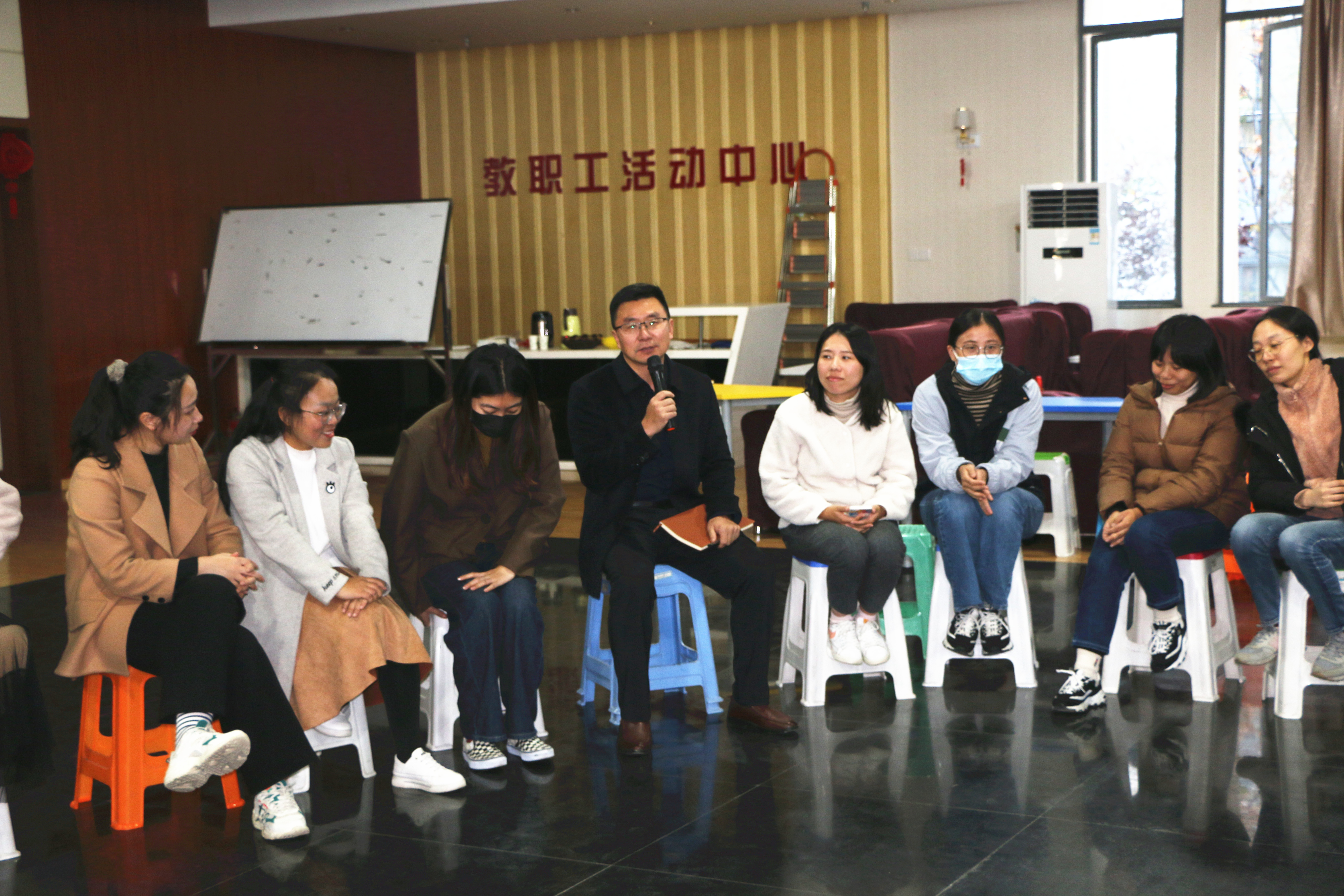 11月8日下午,太阳官网邀请古天乐代言太阳集团城网址心理健康教育与咨询中心主任陆晓花副教授在大学生活动中心教工之家开展了辅导员心理减压团体辅导活动。学院党委副书记兼副院长王楷主持本次活动。学生工作处处长解厚荣、副处长余西亚、苗东林以及各二级学院党总支副书记、全体辅导员参加了活动。