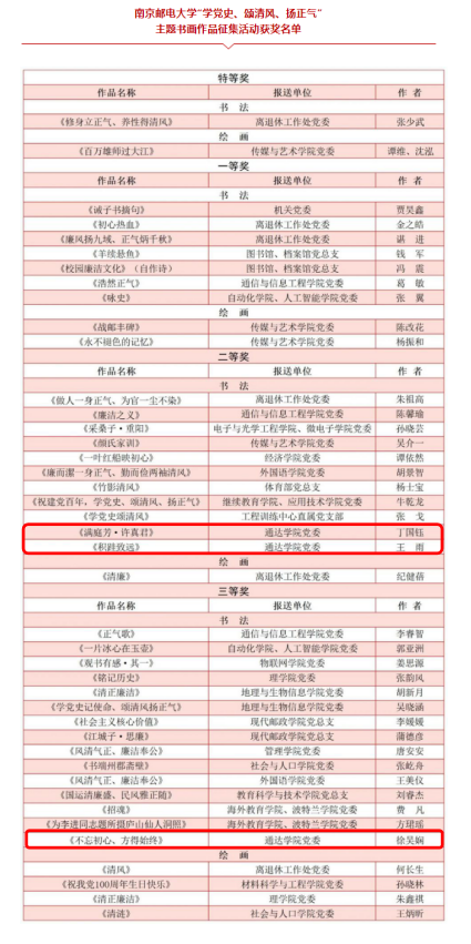 太阳官网历来高度重视校园廉洁文化建设,形成了党政齐抓共管、纪委统筹协调、相关部门协同配合的联动工作机制,多措并举深入推动廉洁教育向实处做、往深里走、到心田去。在“廉洁清风劲、扬帆新征程”新生主题廉洁教育活动中,太阳官网以“重廉·学廉·树廉”为导向,以“五个一”主题活动为抓手,聚力、发力、合力,多维度、立体化开展新生主题廉洁教育,有效实现了对全院3000余名新生的全覆盖,获评“优秀组织奖”。在“学党史悟思想、促廉洁强自律”专题知识竞赛中,计算机工程学院唐启林同学(20630614)、商学院程晨同学(20550218)代表学院参赛,积极备考、沉着应对,以均分第二的成绩获评团体二等奖。在“学党史、颂清风、扬正气”主题书画作品征集活动中,全院师生积极参与、热情响应,共征集作品73件,评出一等奖5个、二等奖10个、三等奖20个。根据要求择优上报一等奖5件作品参加校赛,其中3件作品获奖:商学院丁国钰同学(21570318)创作的《满庭芳·许真君》、王雨同学(21540304)创作的《积跬致远》获评二等奖,商学院徐吴娴同学(18580122)创作的《不忘初心、方得始终》获评三等奖。