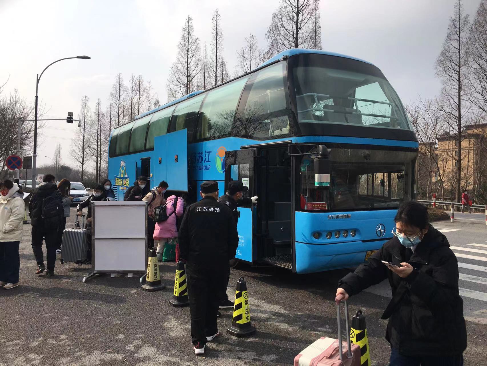 为了确保返校路程中的安全,学院安排了扬州各站点的车辆接站。本次返校接站除了火车站、汽车站外,还特别增设了“扬泰机场”接站点,给同学们带来了意外惊喜。高效便捷的入校流程、贴心周到的返校服务、务实有效的防控举措,赢得了返校同学的纷纷点赞。