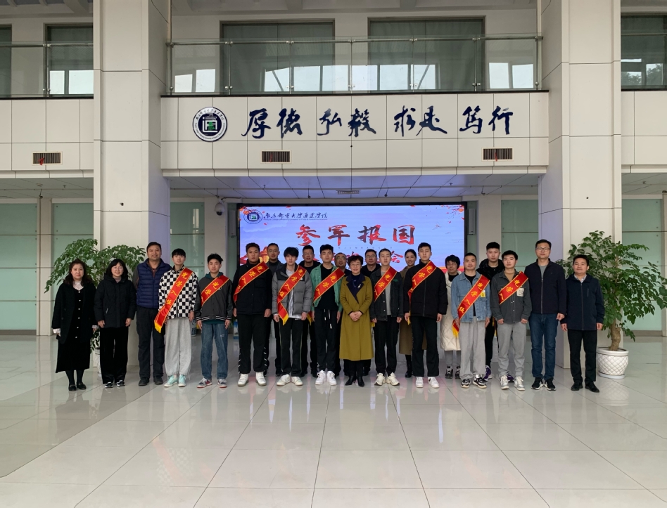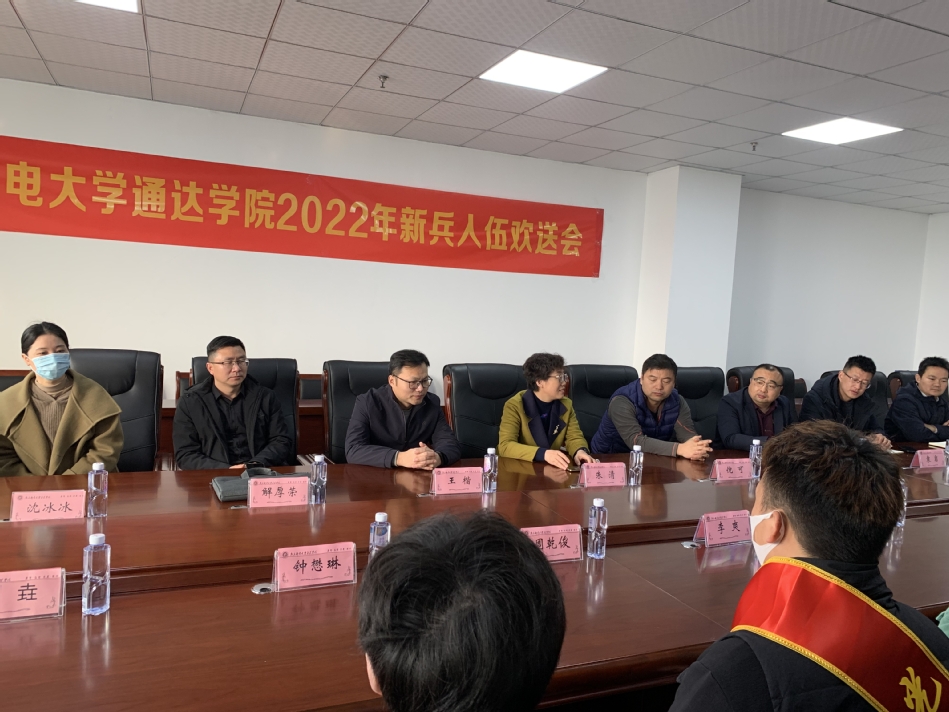 2022年3月1日上午,在行政楼五楼会议室举行了2022年春季大学生入伍欢送会。学院党委书记朱清,副院长倪可,党委副书记兼副院长王楷出席欢送会。院学工处和人武部部门负责人、二级学院副书记及退伍学生代表参加了欢送会。会议由人武部负责人陈平波同志主持。