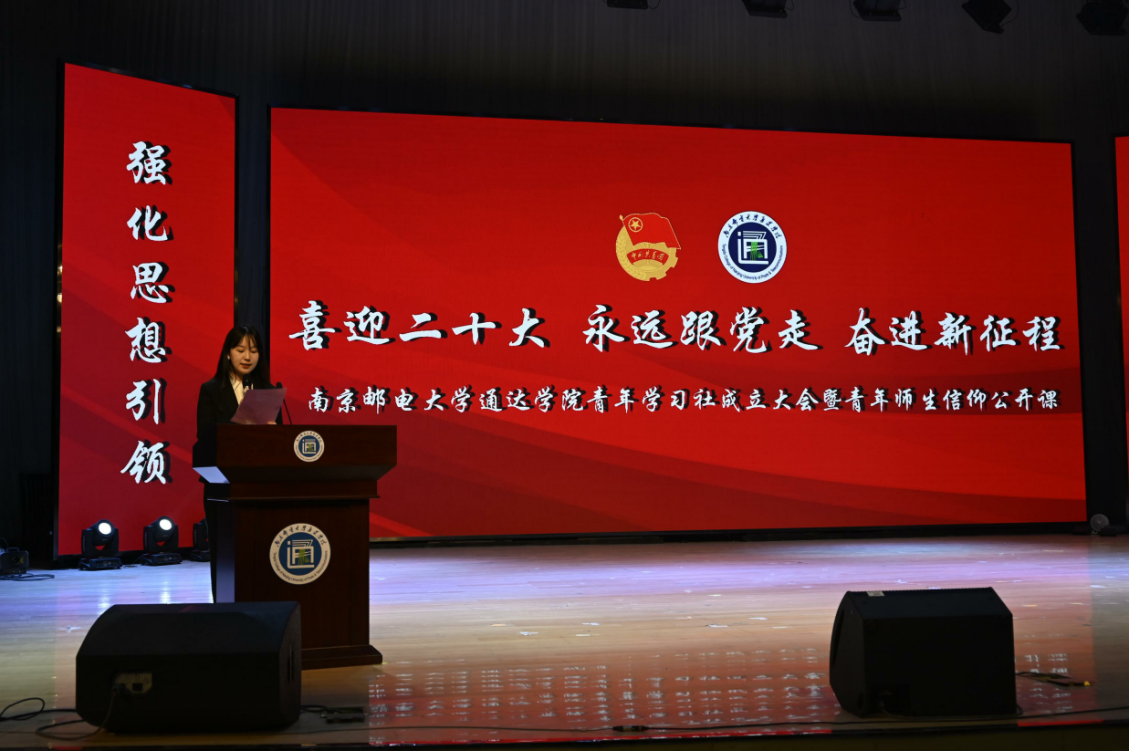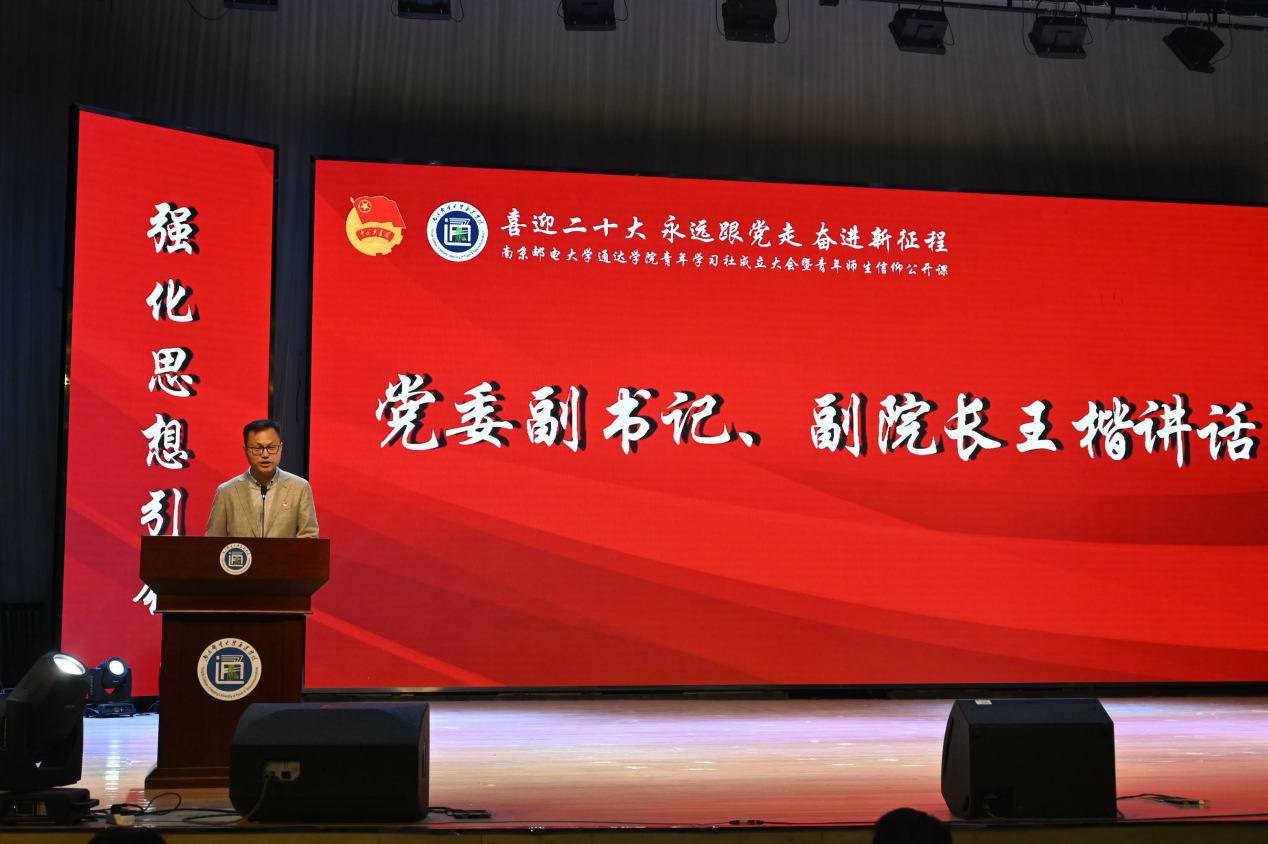 党委副书记、副院长王楷作了《在新时代中学思践悟 在新征程上筑梦前行》的讲话。王书记表示青年学习社的成立是太阳官网广大青年政治生活中的一件大事、一件喜事,他代表学院向学习社的成立表示祝贺,并向全院团员青年致以节日的问候。王书记分析说明了在太阳官网成立青年学生社的必要性,他指出党和国家领导人始终把关注的目光聚焦青年,明确提出赢得青年才能赢得未来,对青年一代寄予殷切期望,注重启迪青年智慧,激发青年力量,勉励青年担当。太阳官网成立学习社对于进一步聚焦共青团工作的主责主业,推动“青年大学习”走向深入、取得实效,促进优秀青年学生队伍的壮大发展,有着重要作用。王书记对全院青年学生提出四点希望:一是坚定信念,做社会主义核心价值观的践行者;二是勤学笃行,做民族复兴国家富强的推动者;三是明辨是非,做主流思想文化的引领者;四是学习榜样,做传承五四精神的担当者。王书记勉励同学们,要珍惜时光,不负韶华,不负青春,用刻苦努力履行“强国有我,请党放心”的庄严承诺,书写绚丽多彩的青春和未来!