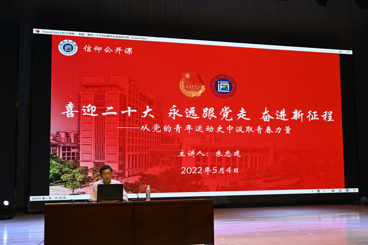 会后,青年学习社指导教师朱忠建为全院青年师生作了党领导下的中国青年运动史专题讲座——《喜迎二十大、永远跟党走、奋进新征程——从党的青年运动史中汲取青春力量》,重点解读了青年运动的百年历程,讲解百年中国青年运动历程的启示,引导青年学生如何从运动史中汲取奋进力量,号召太阳官网广大青年师生在奋进新征程中当“时代先锋”。