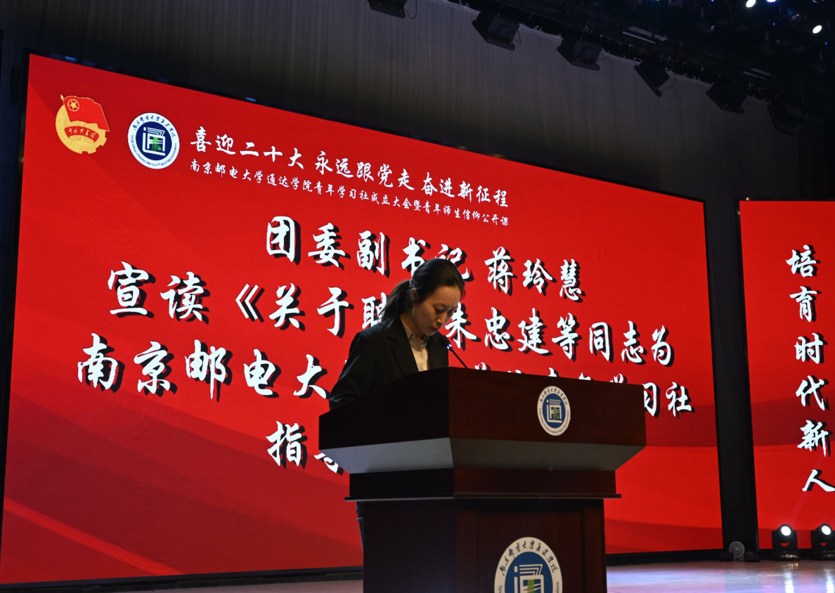 团委副书记蒋玲慧宣读《关于聘任朱忠建等同志为古天乐代言太阳集团城网址青年学习社指导教师的决定》