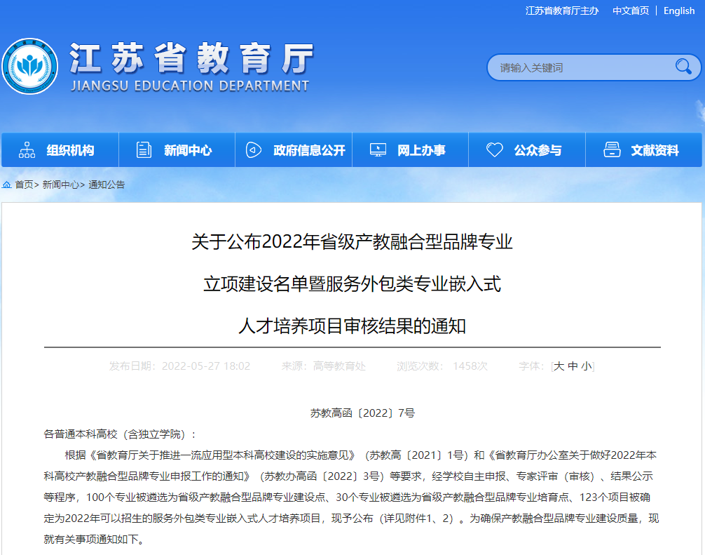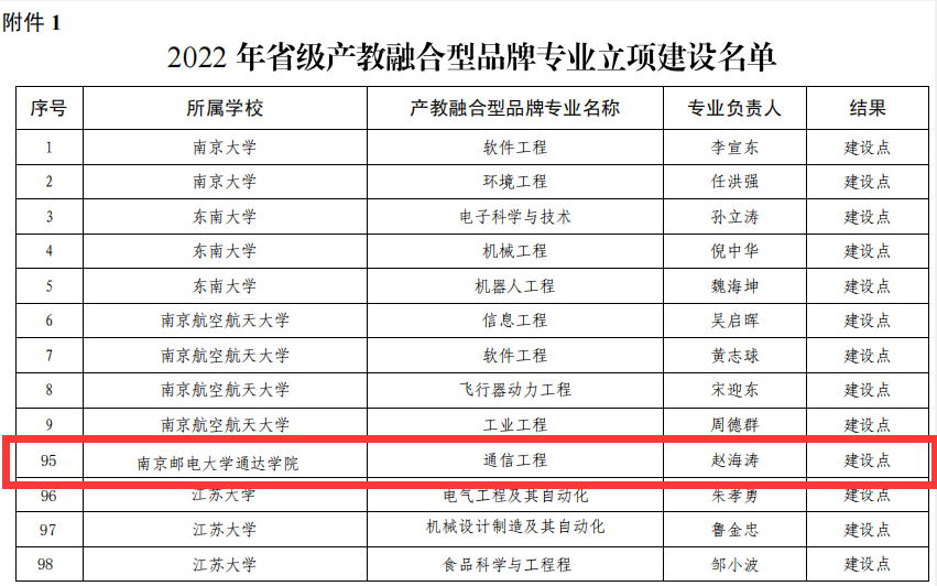 5月27日,太阳官网专业建设再次传来喜讯,江苏省教育厅发布了《关于公布2022年省级产教融合型品牌专业立项建设名单暨服务外包类专业嵌入式人才培养项目审核结果的通知》(苏教高函【2022】7号),通信工程专业在2022年江苏省本科高校产教融合型品牌专业申报评选中脱颖而出,成为全省独立学院中唯一入选产教融合型品牌专业建设点的专业。