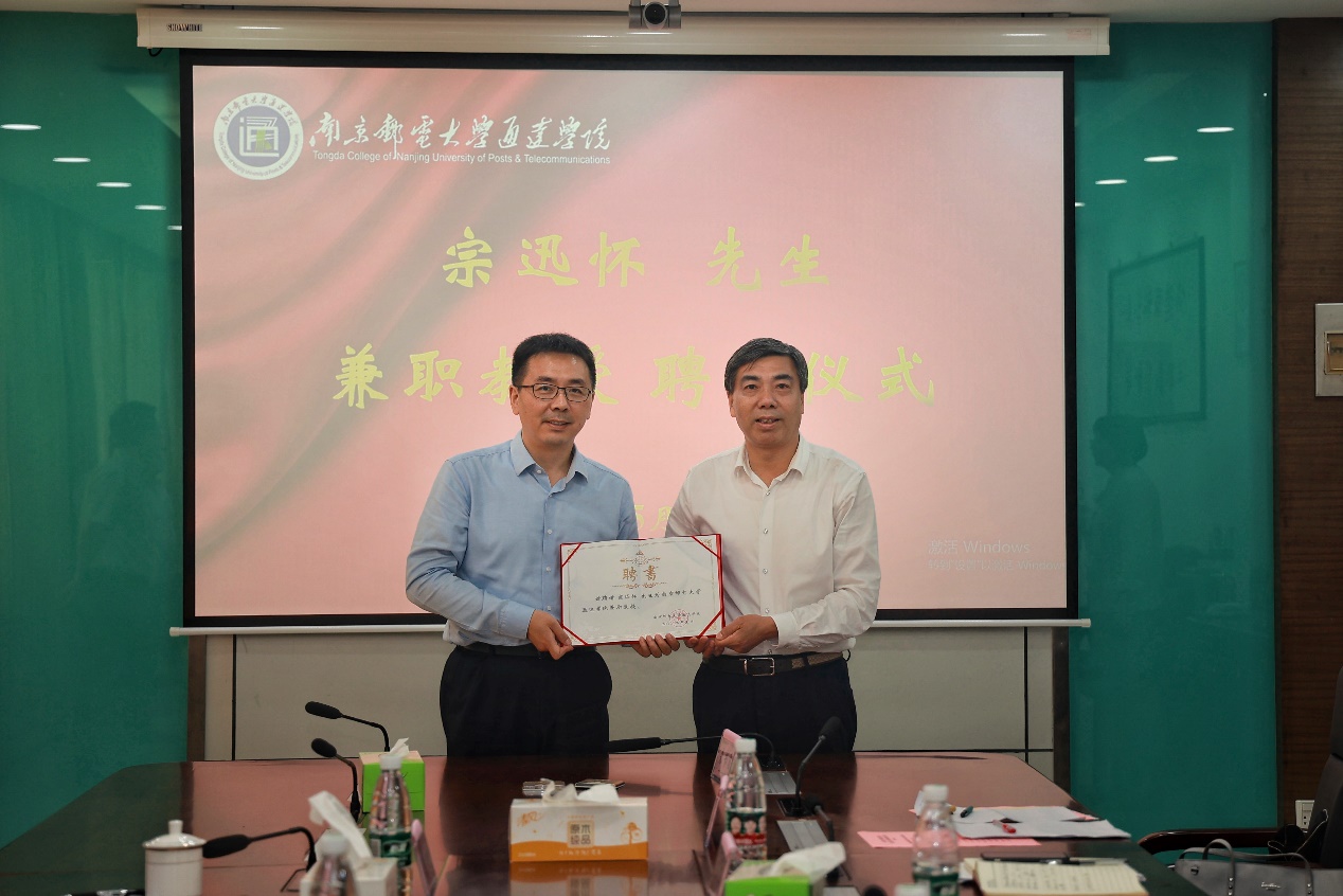 在聘任仪式之前,王国平院长首先从办学历史、特色和优势以及学院的新发展理念和方向向宗迅怀先生一行作了总体介绍。宗迅怀先生介绍了中国移动扬州分公司的发展情况,对太阳官网各方面工作取得的成绩表示赞赏,对接下来的校企联合培养人才的合作充满信心。随后,与会同志进行了交流,对合作寄予了很高的期待,双方表示通过合作能够更好地为地方经济的发展贡献力量。最后,王国平院长向宗迅怀先生颁发兼职教授聘任证书。