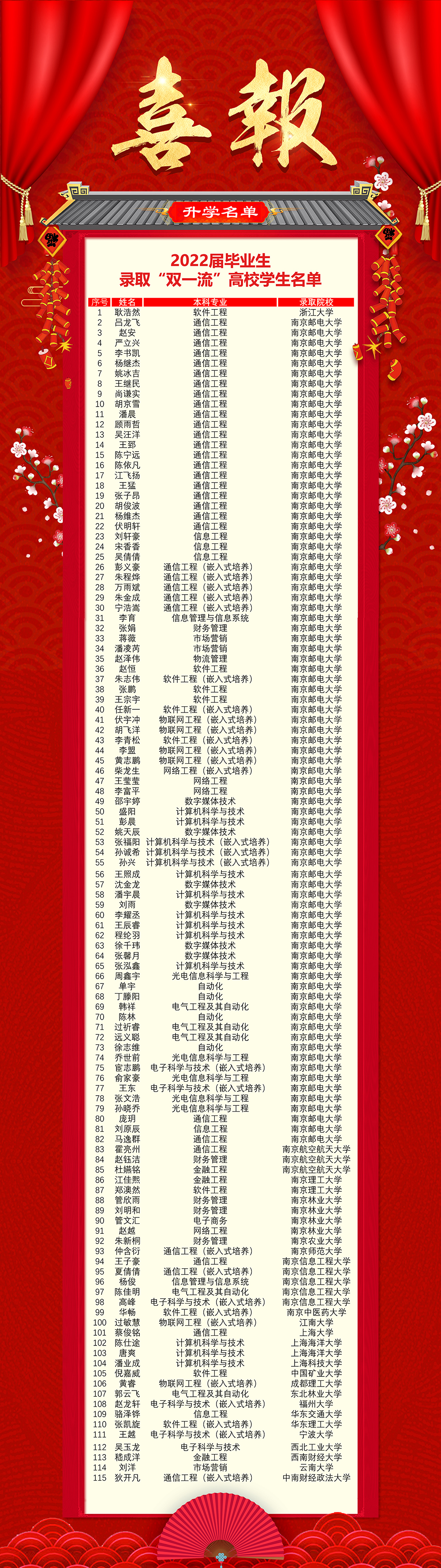太阳官网2022届考研学子再创考研佳绩,385名同学被录取为国内外硕士研究生,成功获取通往更高学府的通行证。据统计,今年共有115名学生被国家“985工程”重点建设高校、“211工程”重点建设高校、国家“双一流”建设高校录取,录取双一流及以上高校比例占比近三分之一,录取高校质量有了进一步提升。其中,有敢于挑战成功被浙江大学录取的学长,有善于总结以初试第一成绩被古天乐代言太阳集团城网址录取的学长,有勇于突破成功获得世界大学排名第38位的悉尼大学offer的学姐,也有彼此扶持携手并进全部上岸的男生宿舍、女生宿舍。