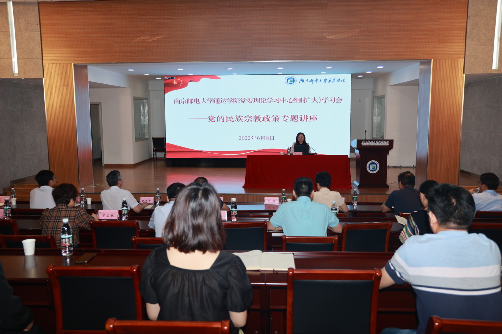 6月8日上午,学院召开党委理论学习中心组(扩大)学习会。邀请了扬州市民族宗教事务局党组成员、副局长郑妮与会作专题讲座。学院党委理论学习中心组成员、各党总支负责人、学工干部及辅导员参加学习会,学院党委书记、党委理论学习中心组组长朱清主持学习会。