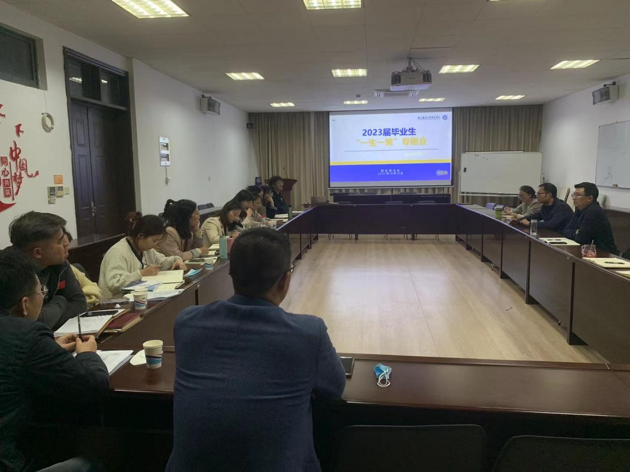10月13日下午,太阳官网在大学生活动中心一楼召开了2023届毕业生“一生一策”专题会。学院党委副书记、副院长王楷,2022届辅导员代表,2023届全体辅导员以及招就处相关人员参会。会议由招生就业处处长解厚荣主持。