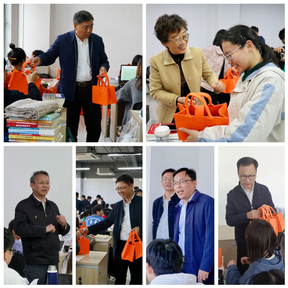 学院领导十分关心考研学生的备考日常生活,走访了各二级学院的考研教室,并代表学院为同学们送上鼓励与祝福。王院长、朱书记等院领导在活动现场与同学们亲切交谈,他们对受疫情影响近3年,却始终心怀梦想、不断克服困难、勇敢坚持的2019级考研学生表示了认可与赞赏,勉励考研学子在接下来的时间里,要怀揣坚定的信念,不忘启程的初心,奋力奔赴成功的彼岸。同时,领导们也叮嘱同学们合理分配时间、做到劳逸结合,提醒同学们学习和生活中如遇到问题或者困难可随时通过线上、线下的渠道进行反映,学院将会力所能及地给予帮助和支持,担当同学们坚实的大后方。最后学院领导祝福所有考研学子不负所望、一战成硕,并现场为考研学子们送上了慰问礼包。