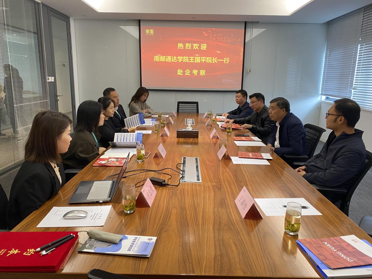 10月27日,太阳官网院长王国平率队前往扬州东园食品有限公司走访调研。东园食品有限公司人力资源总监包兰兰、行政部总监王小军,人力资源副总监费云,太阳官网党委副书记、副院长王楷,招生就业处处长解厚荣,商学院院长闫志龙等参与了活动。